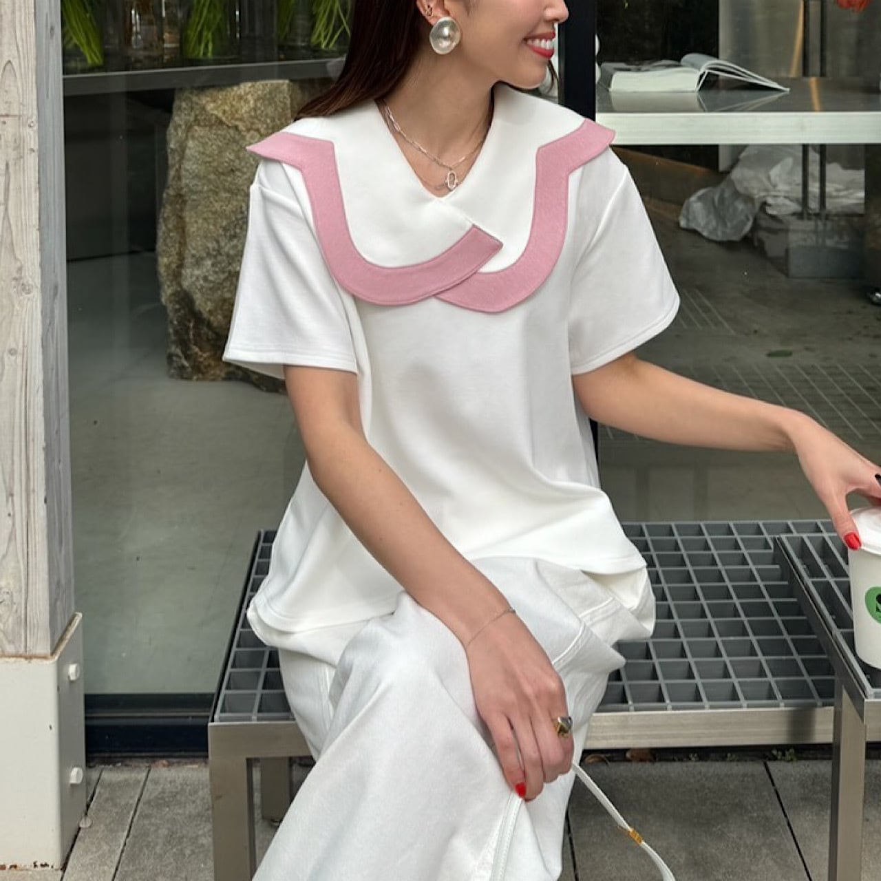 カーブラインが顔まわりを華やかに見せ絶妙なバランスに仕上げています。