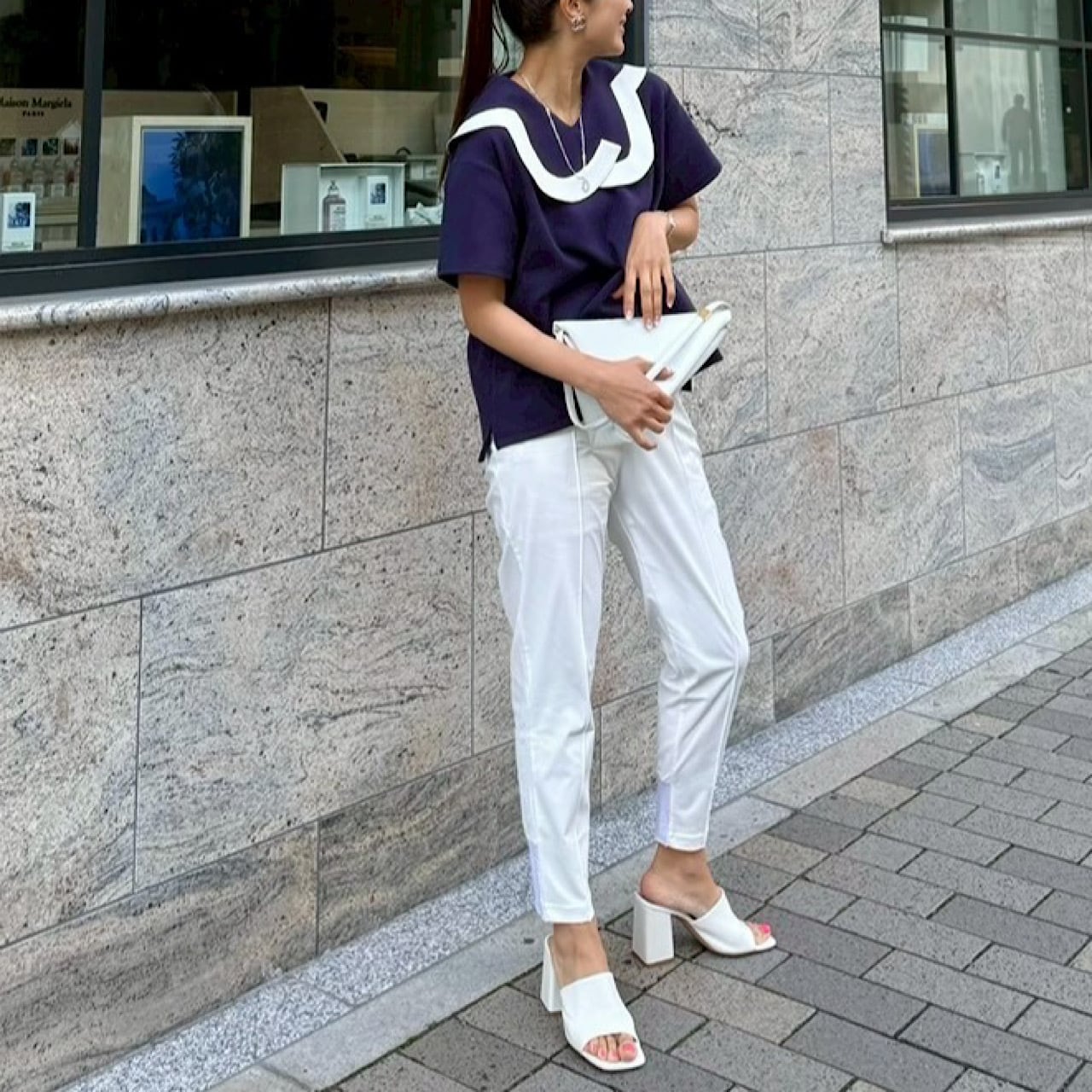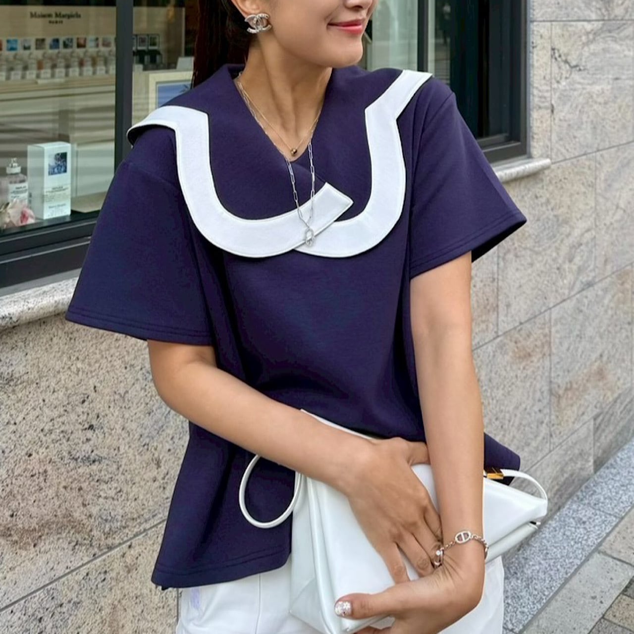ニューピエロトップス(ネイビー×オフ)