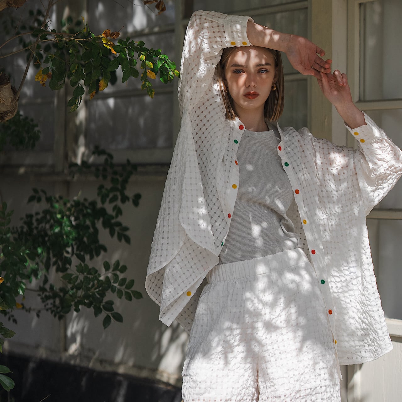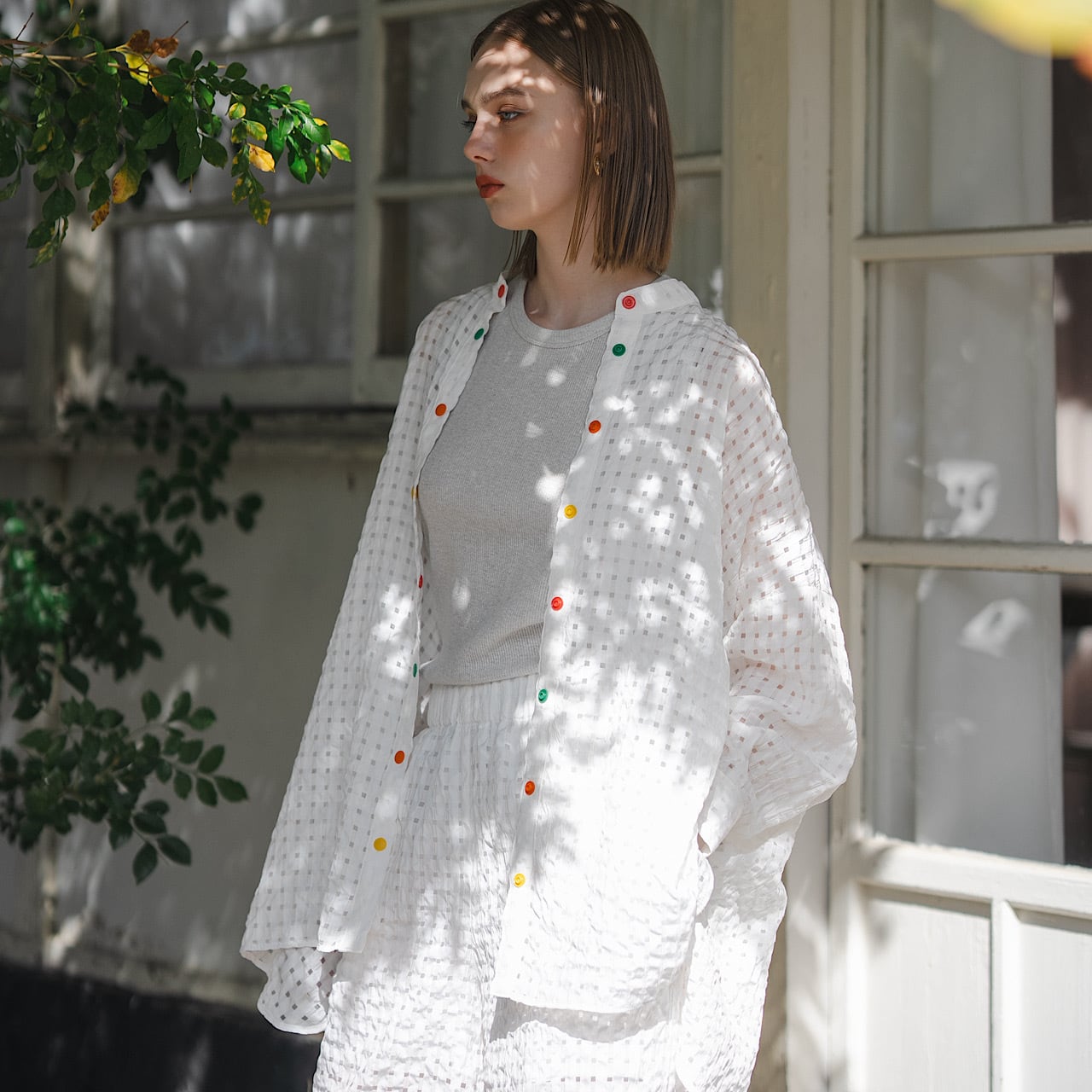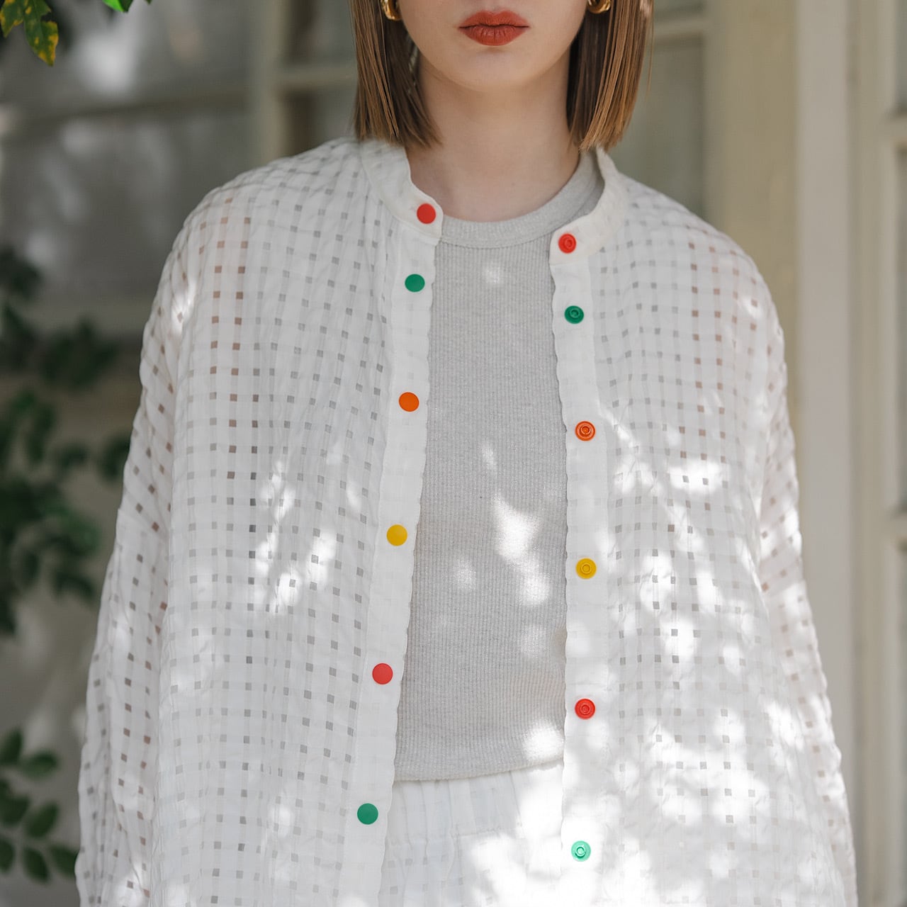 日よけ、冷房対策にも抜群な夏にぴったりなシアーシャツ。