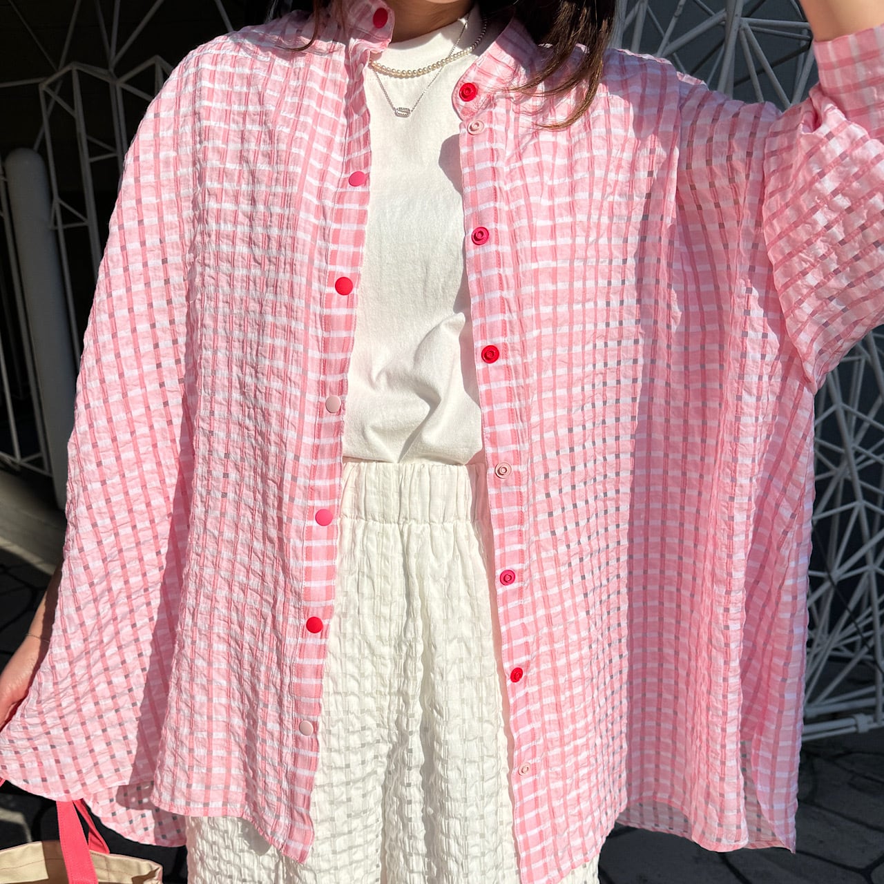 日よけ、冷房対策にも抜群な夏にぴったりなシアーシャツ。