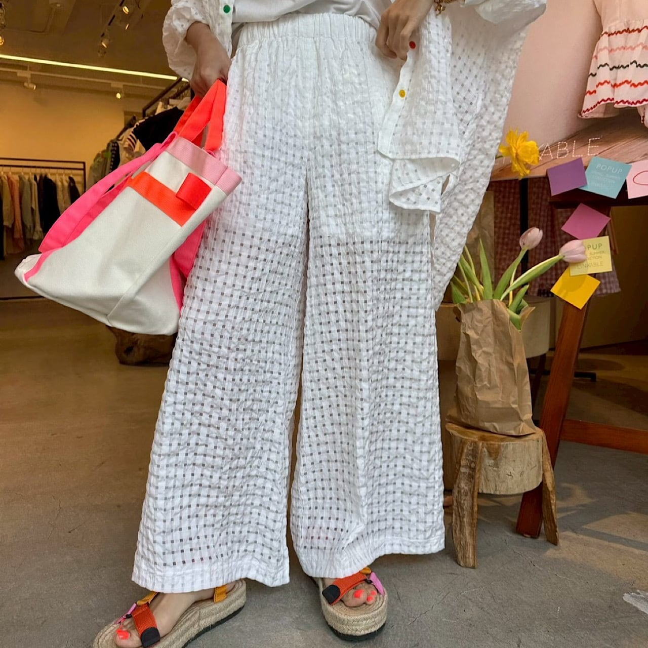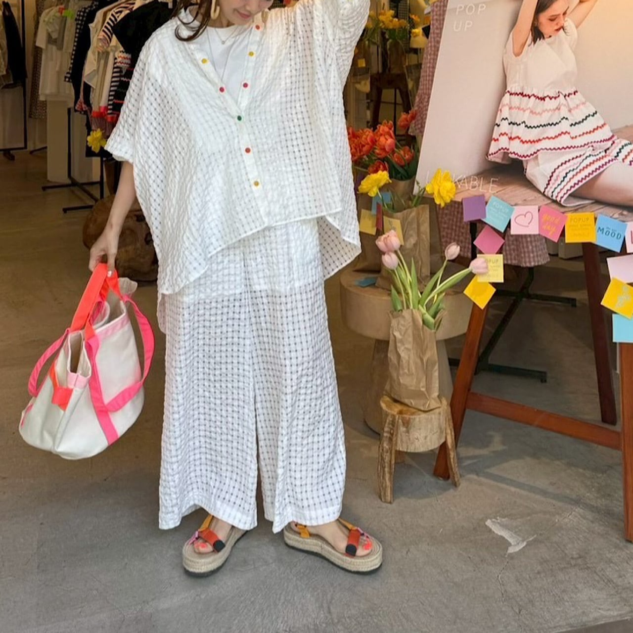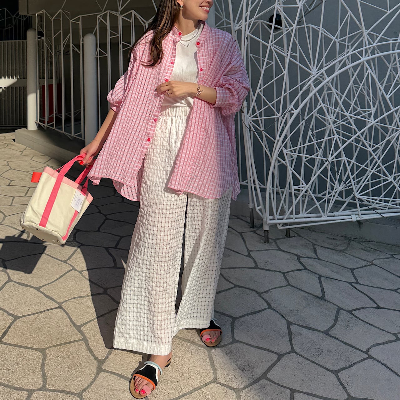 Tシャツと合わせてカジュアルに、シアーシャツと合わせてセットアップに。上下カラー違いもおすすめ。