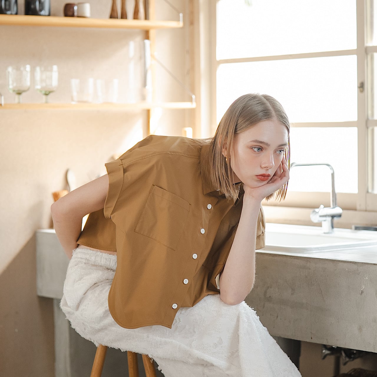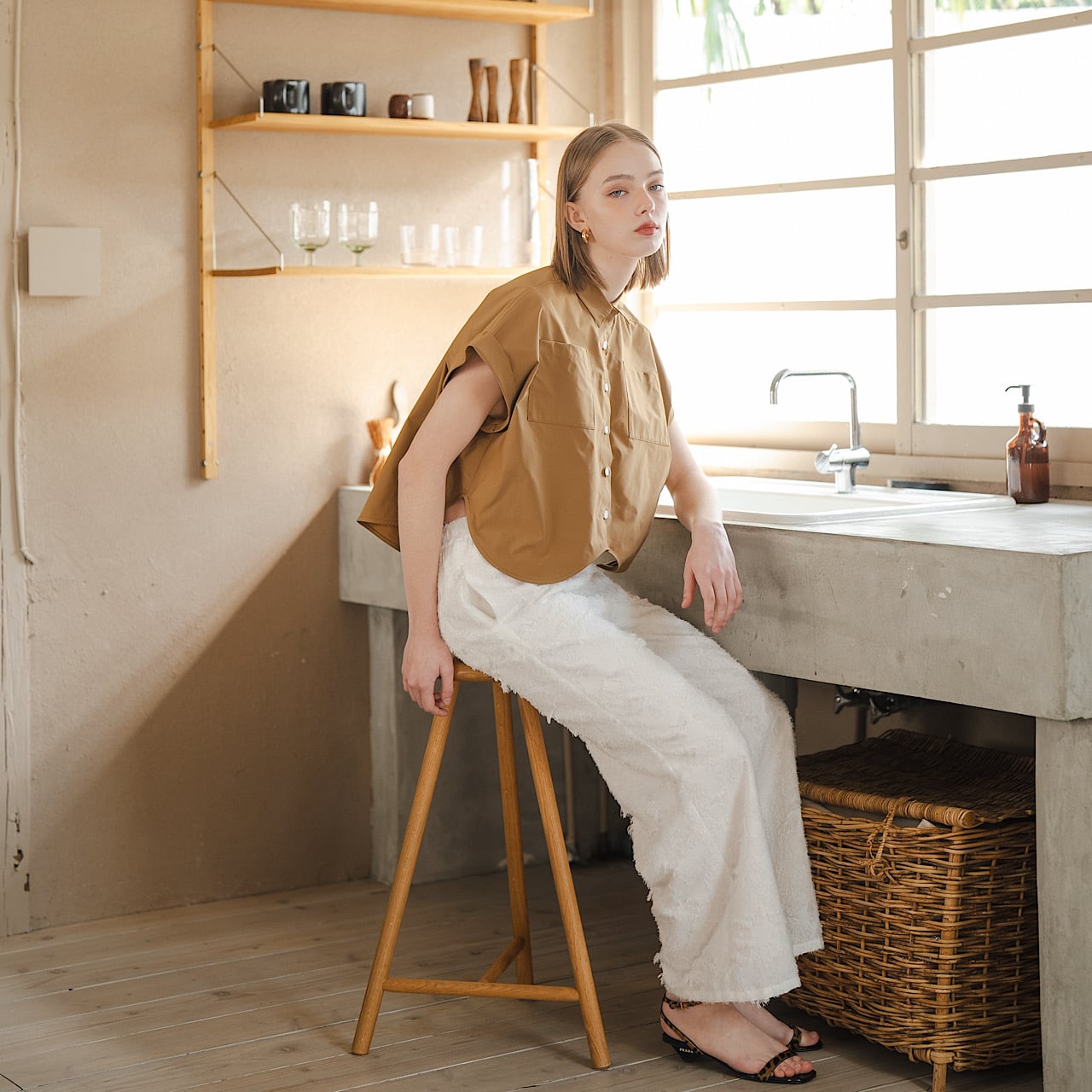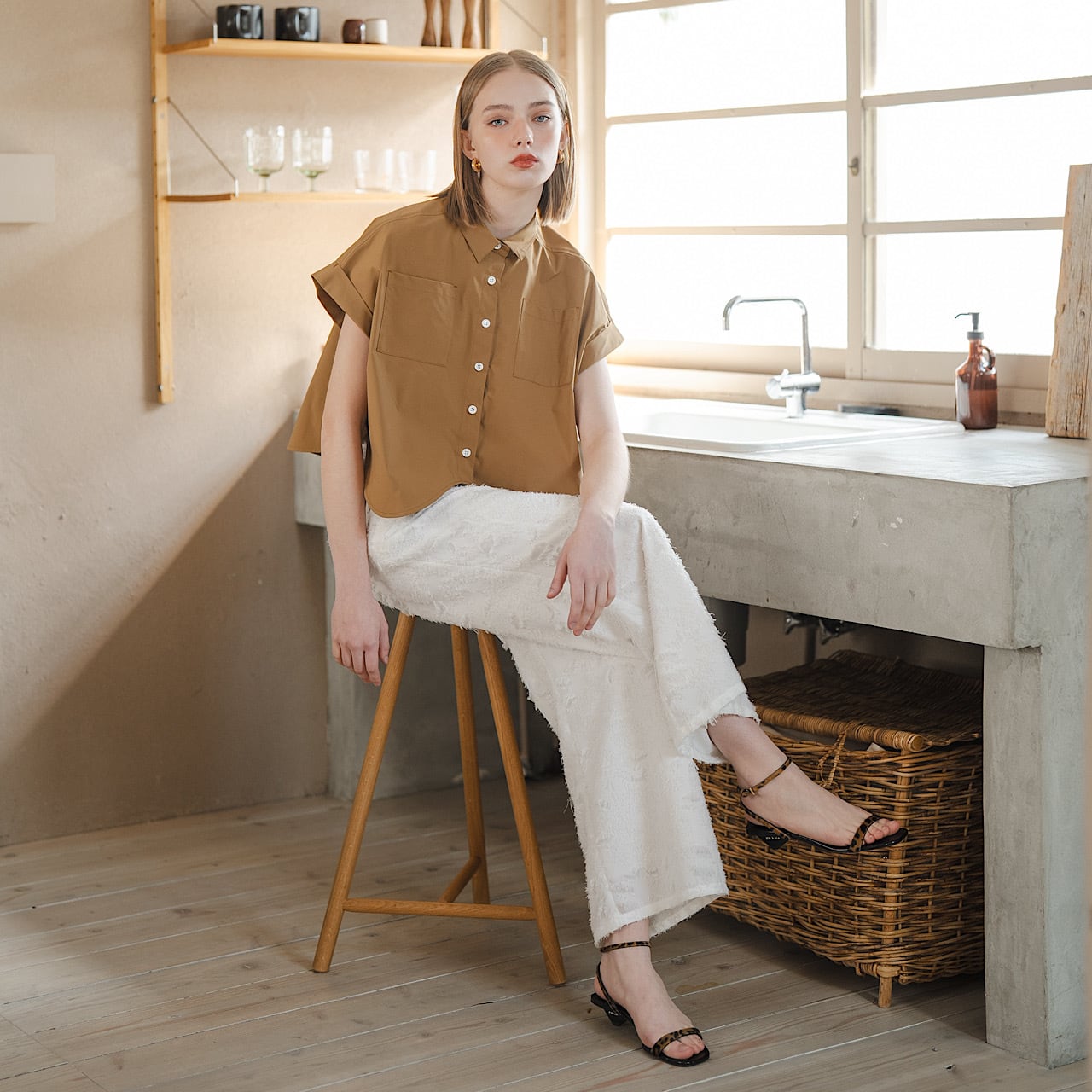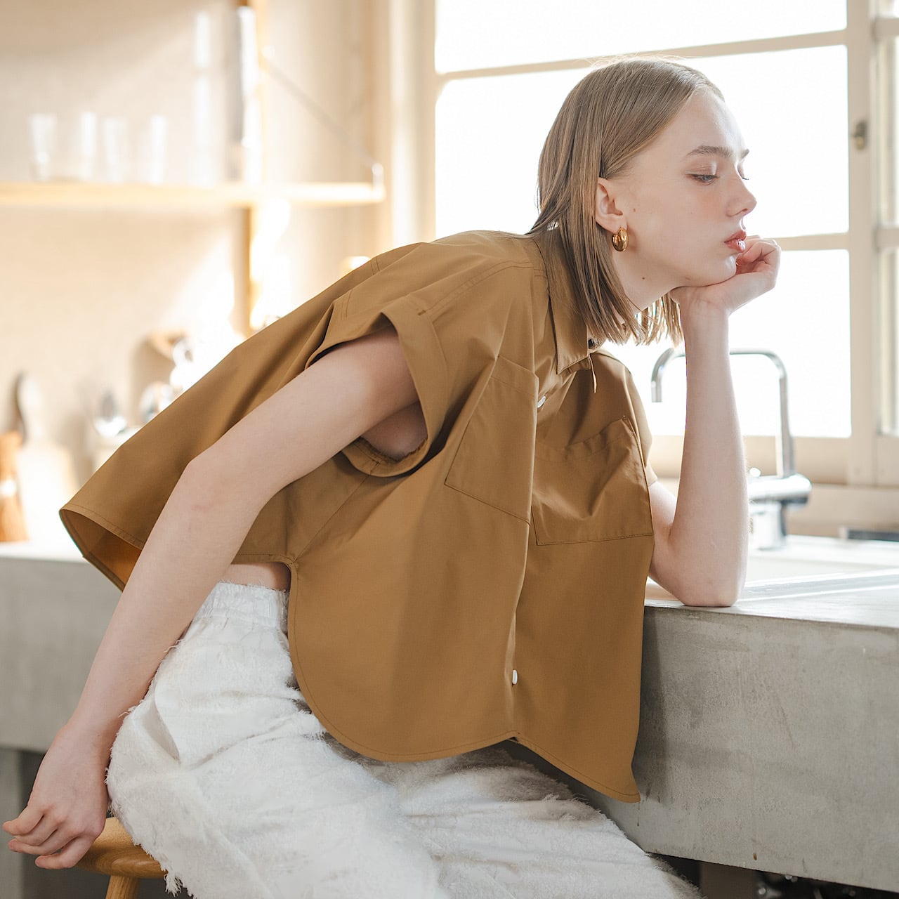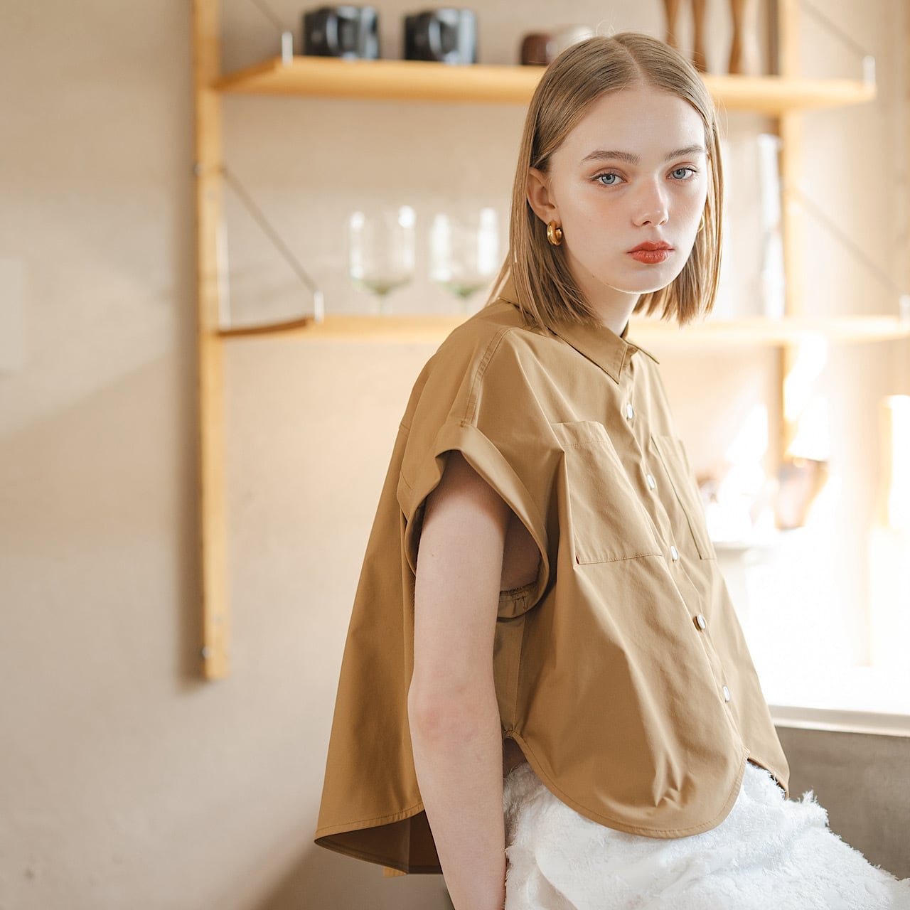ペタルカットシャツ(キャメル)