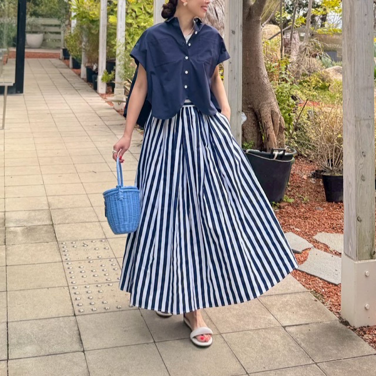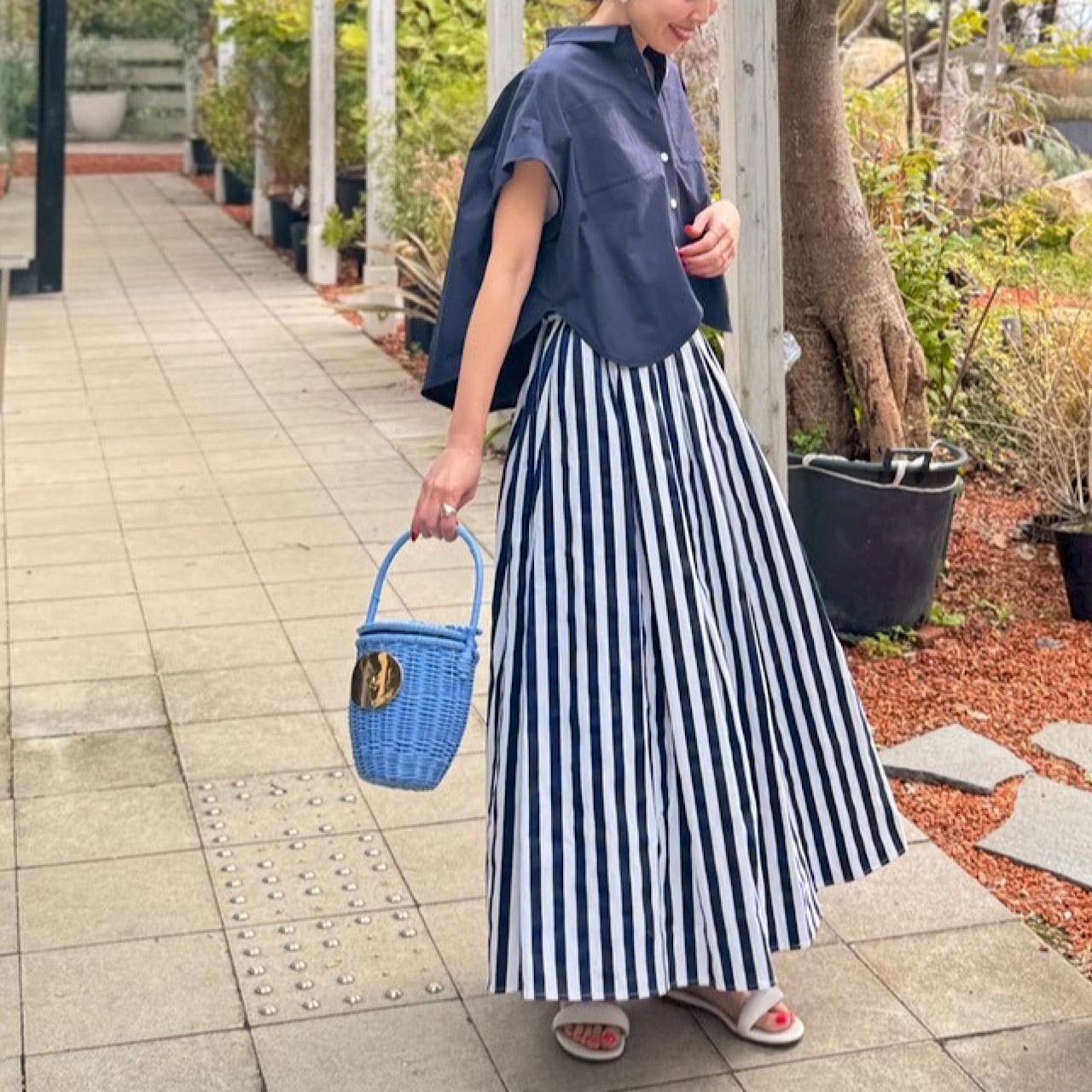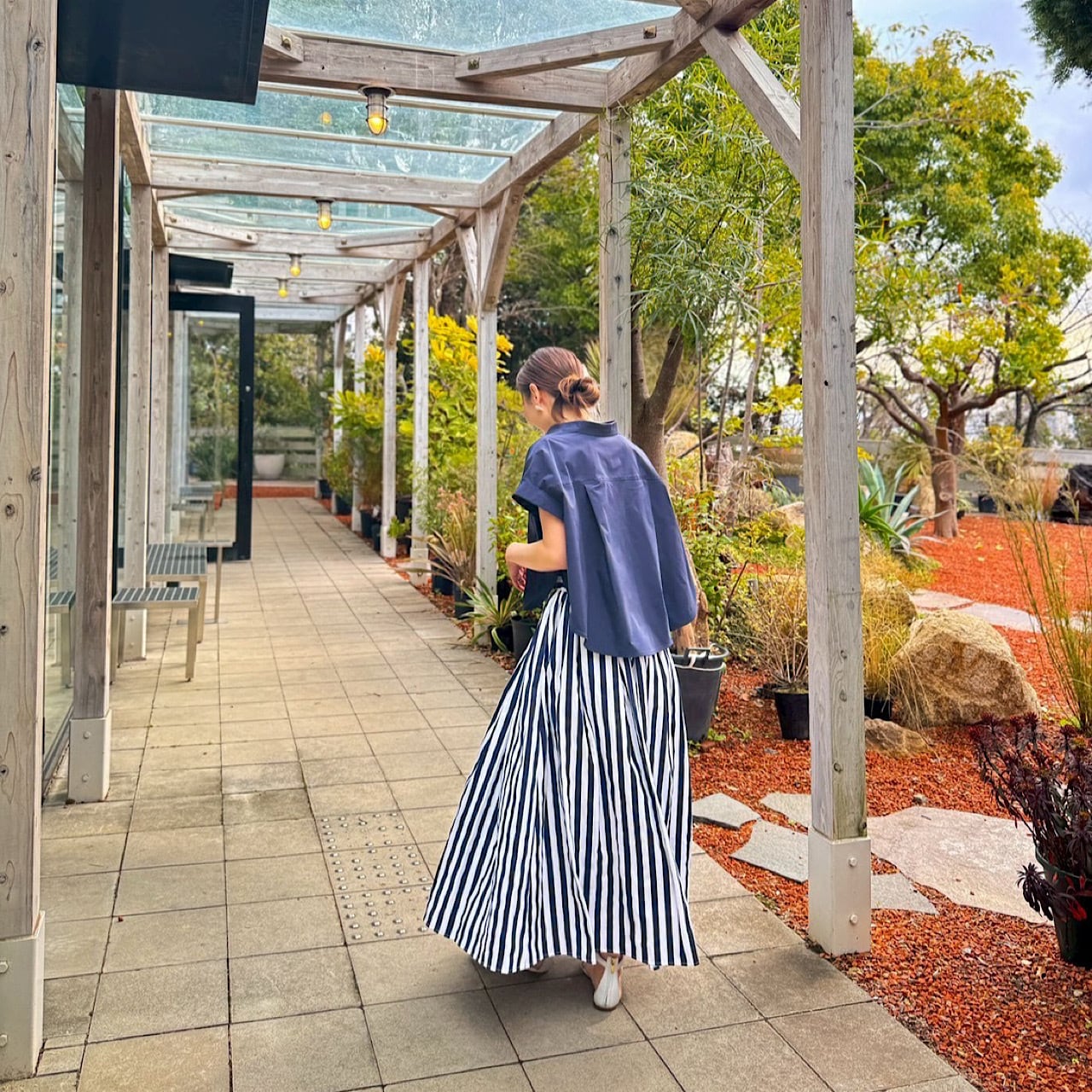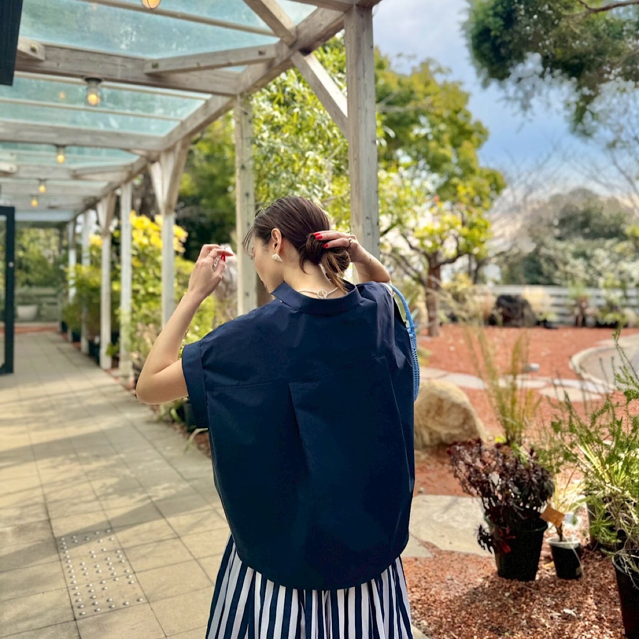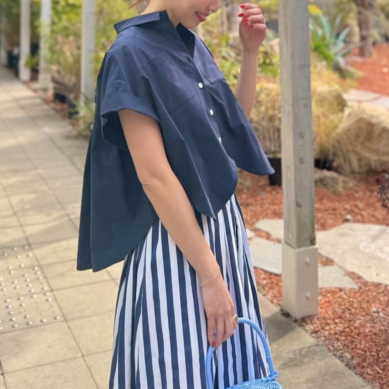 また、短めの丈感とラウンドヘムのシルエットが