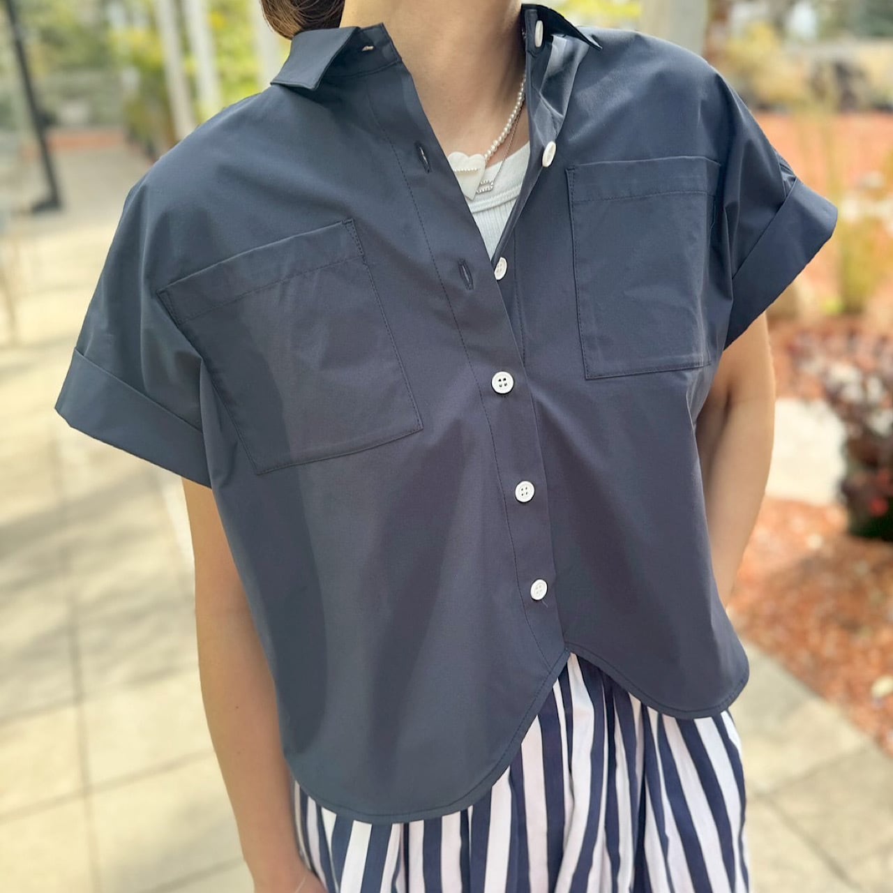 ペタルカットシャツ(ネイビー)
