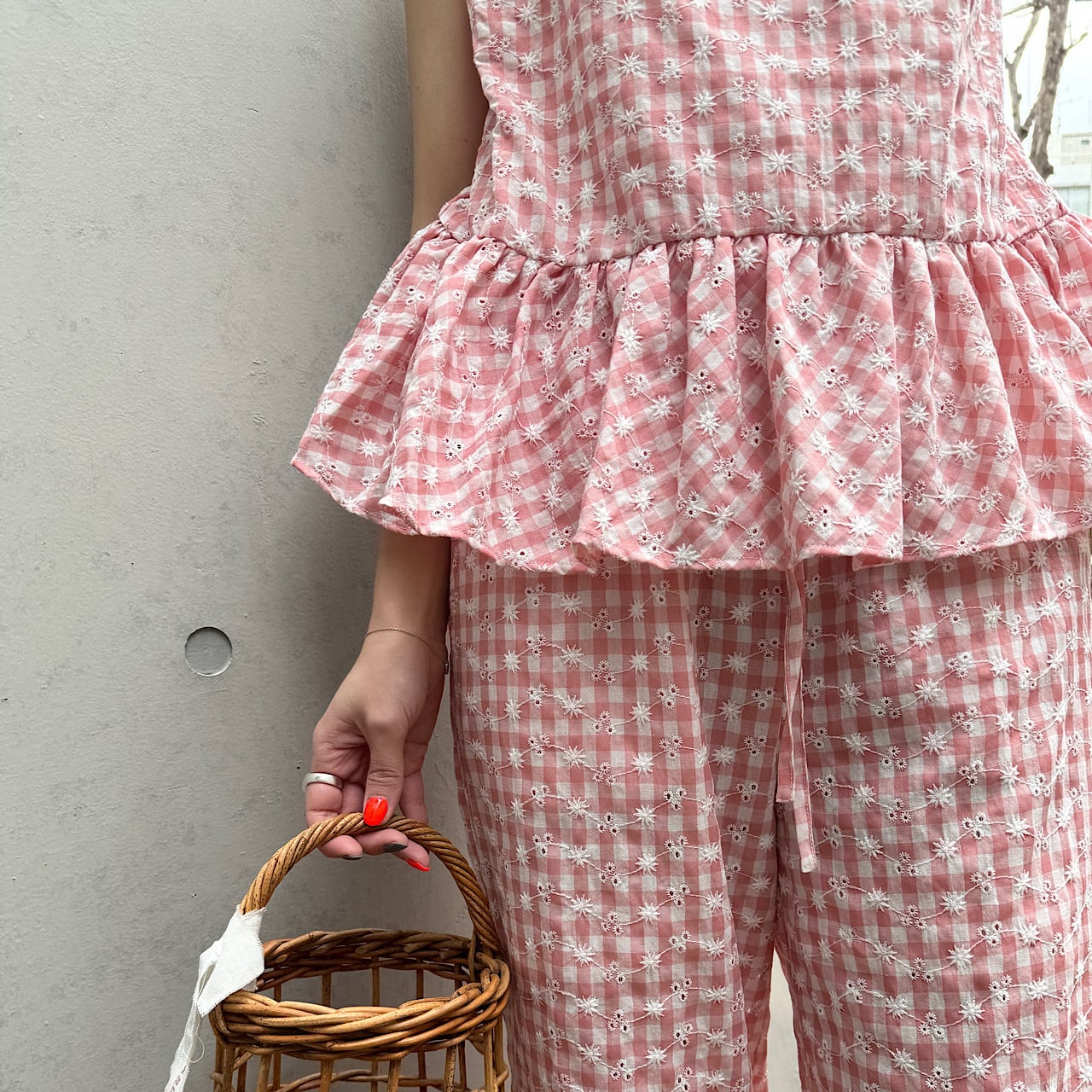 ギンガムレースパンツ(ピンク)