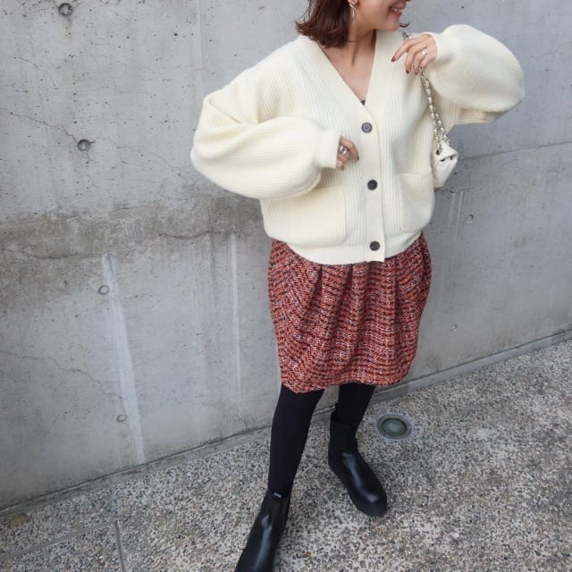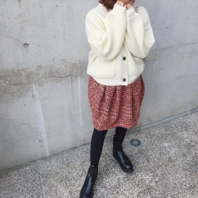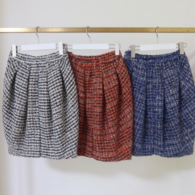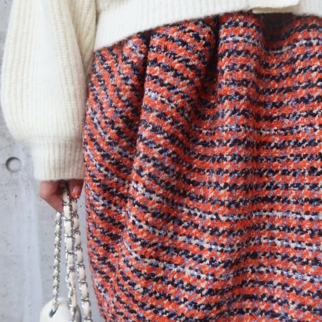 ミックスカラーのツイードと立体的なフォルムが魅力的なスカート。