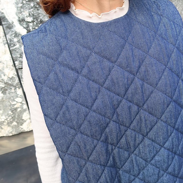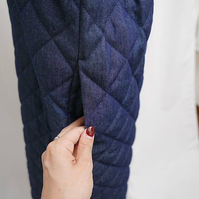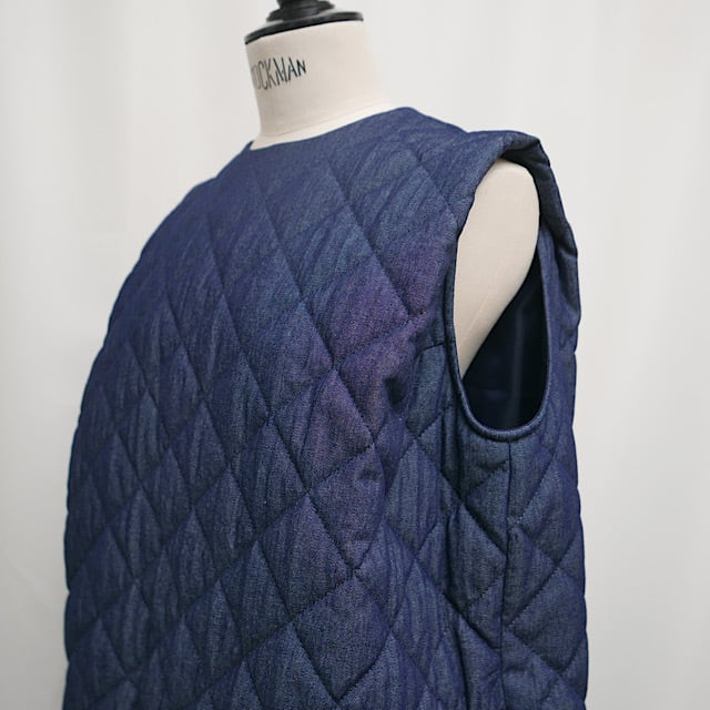 ソフトデニムに中綿をキルティングし軽く暖かな着心地に。