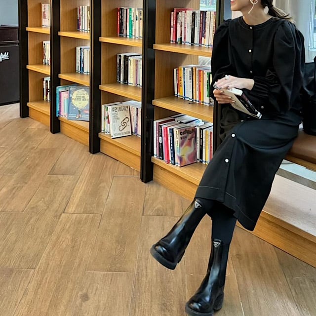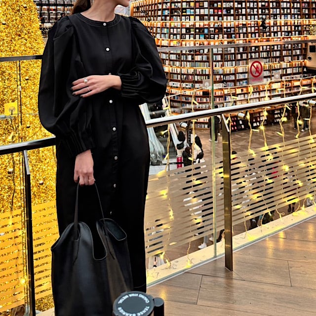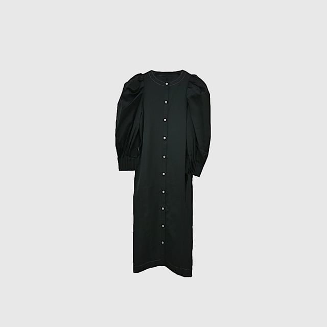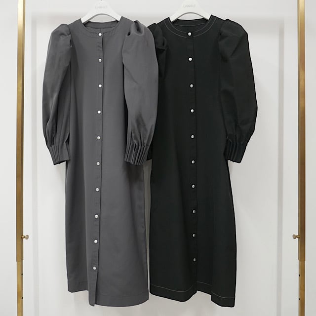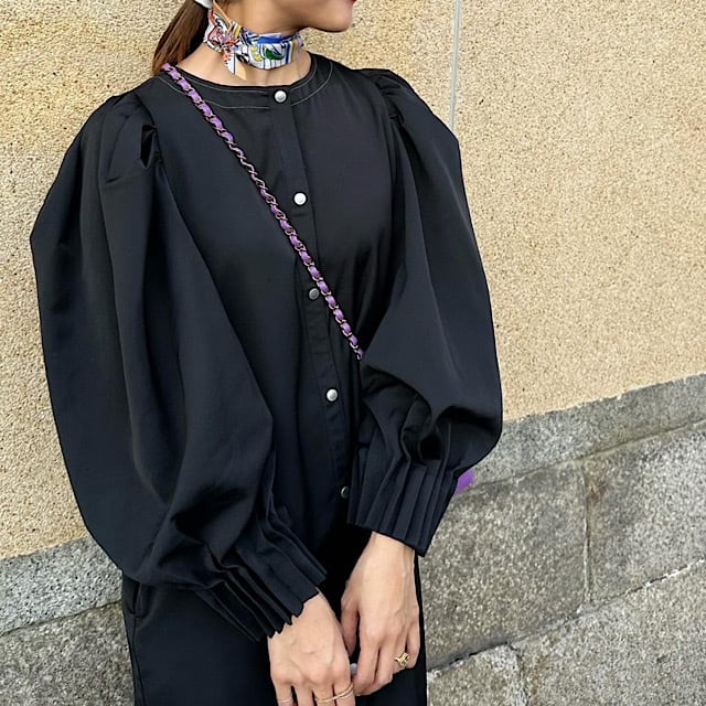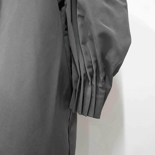 ボリュームのあるスリーブと袖口のプリーツデザインが特徴的なワンピース。