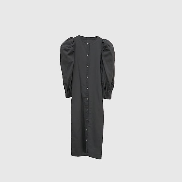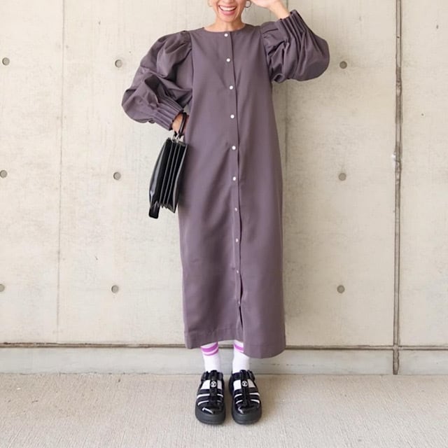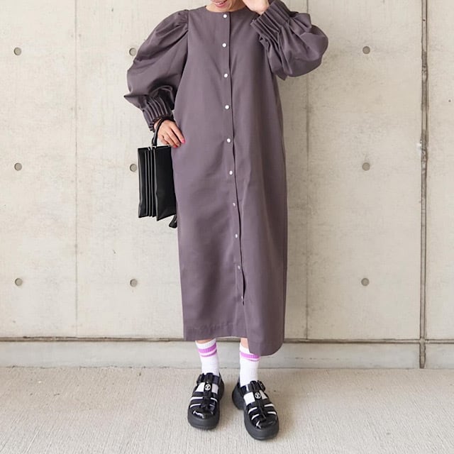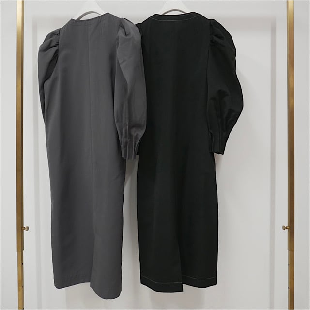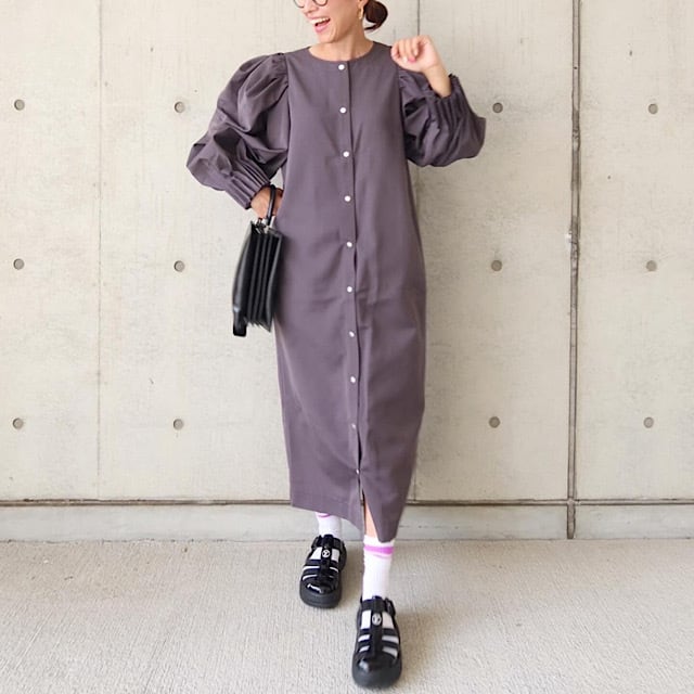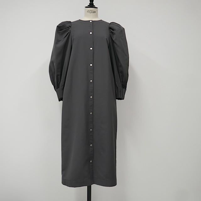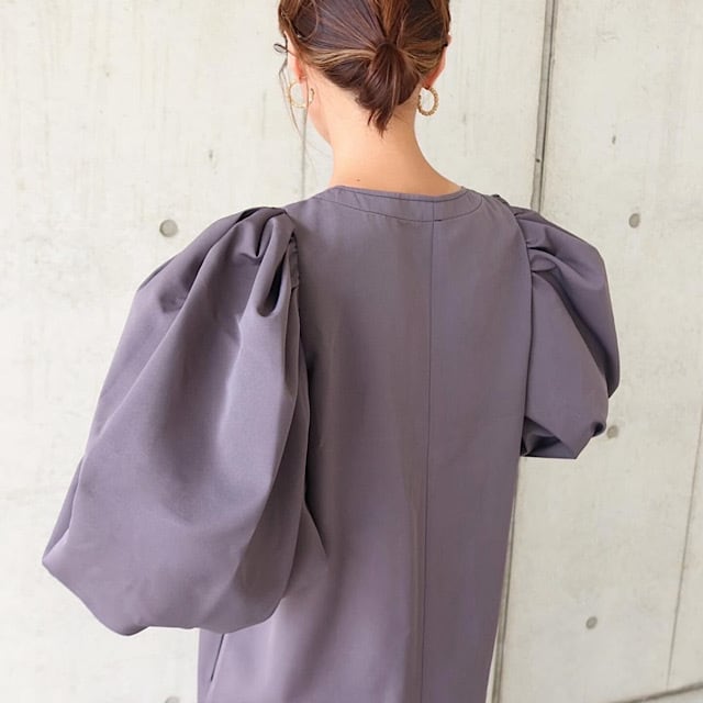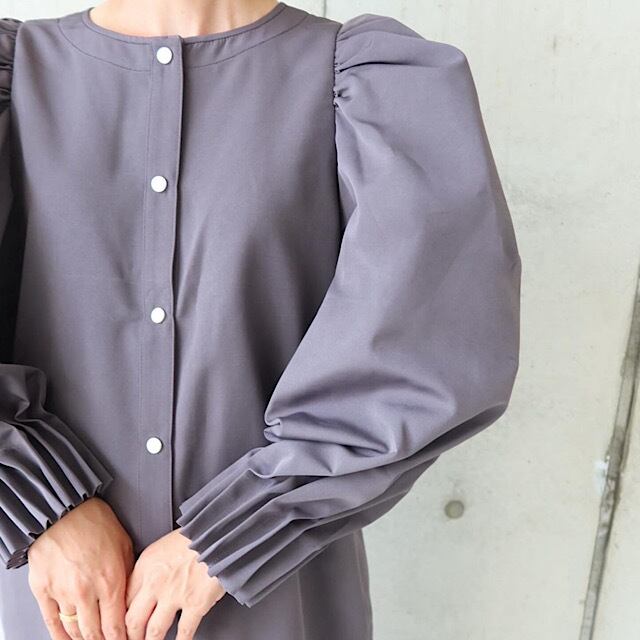 ボリュームのあるスリーブと袖口のプリーツデザインが特徴的なワンピース。
