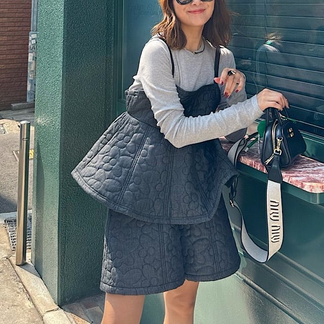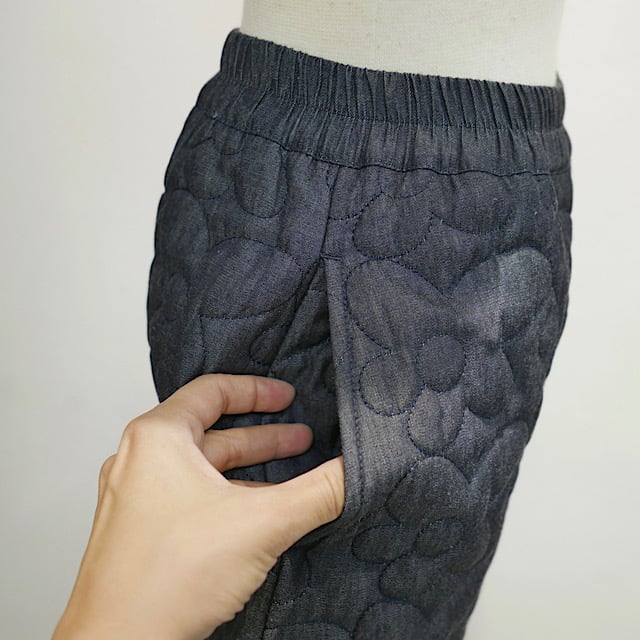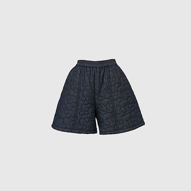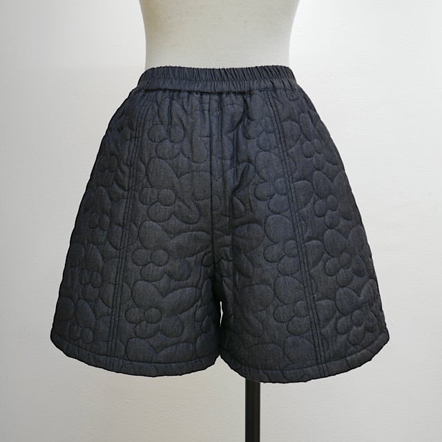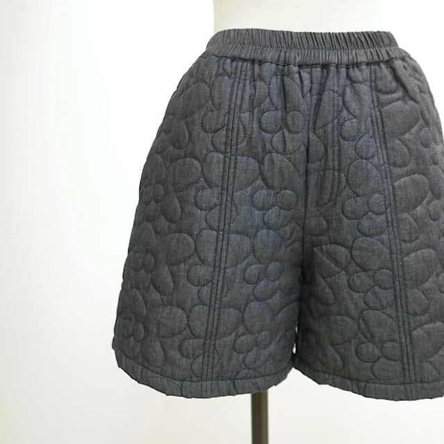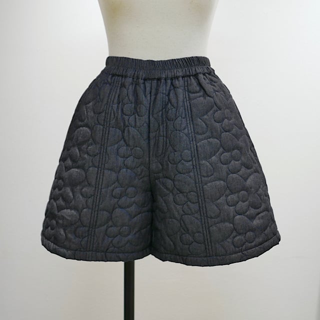お花をイメージしたデザインキルトデニム生地を使用したショートパンツ。