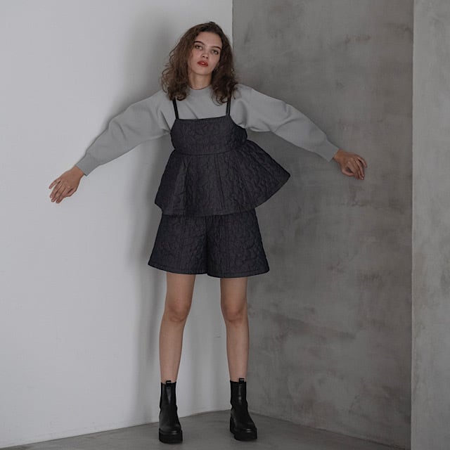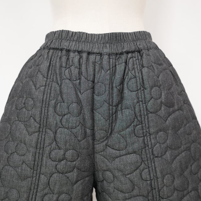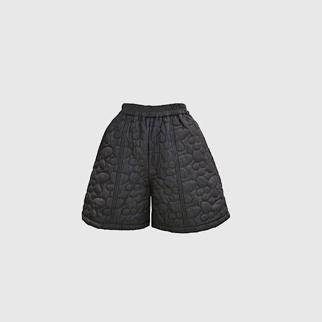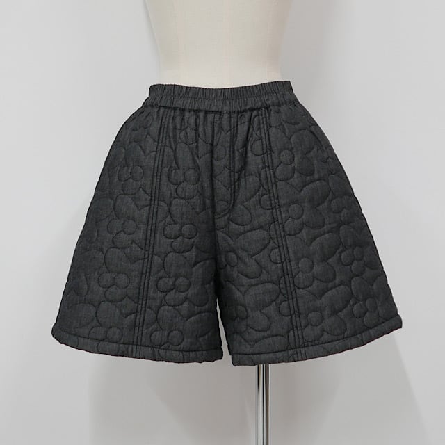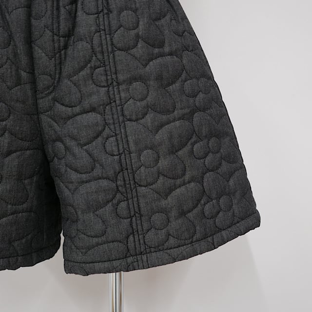 お花をイメージしたデザインキルトデニム生地を使用したショートパンツ。