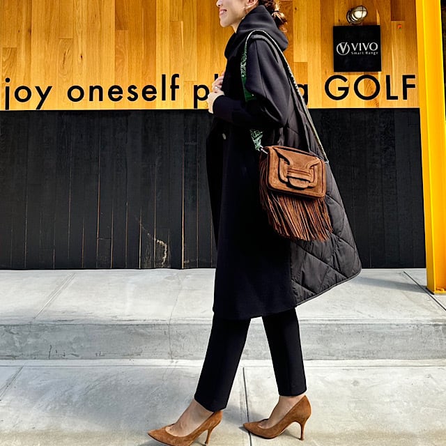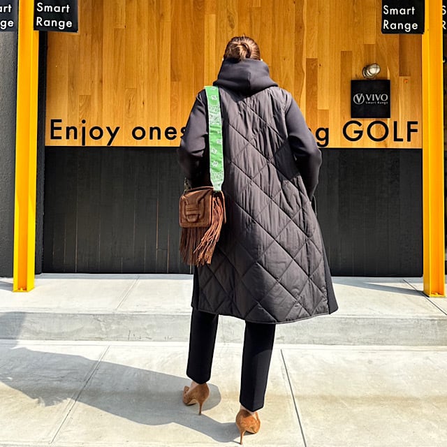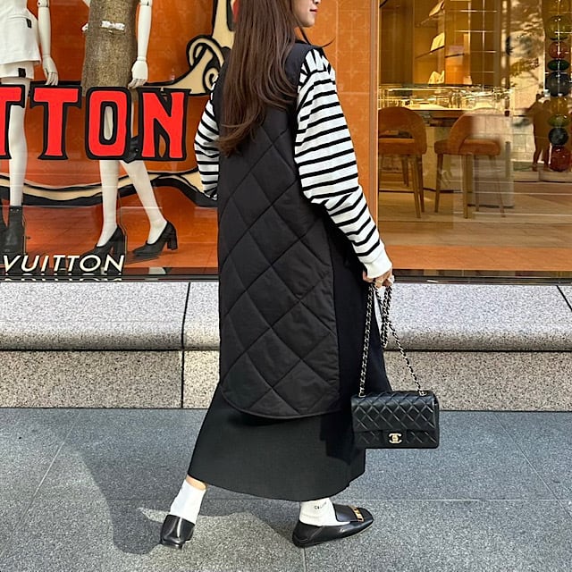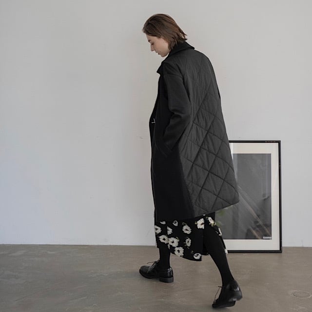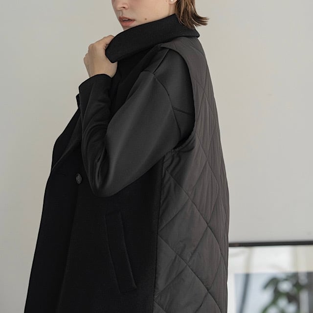 カシミアをブレンドした上質なファインウールとキルトをドッキングしたロングジレ。