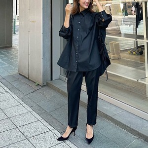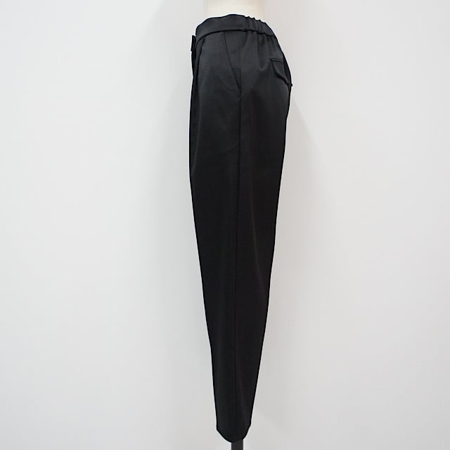 光沢感とハリ感、コシのある風合いが特徴的なタフタパンツ。