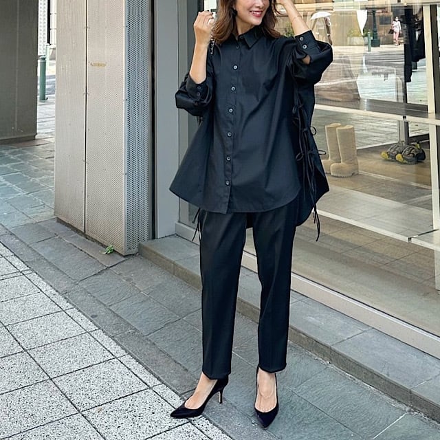 細身すぎないシルエットのテーパードパンツはシンプルなトップスに合わせてもコーディネートを華やかにしてくれます。
