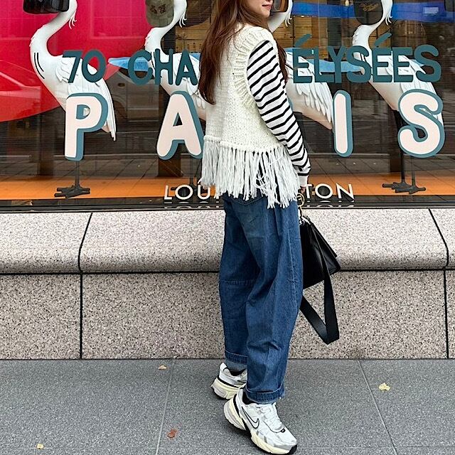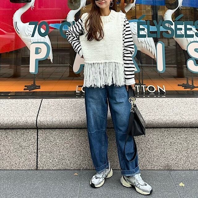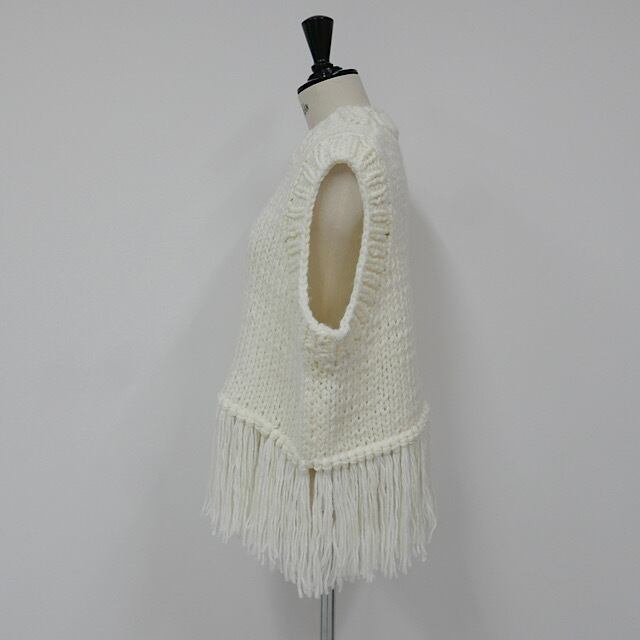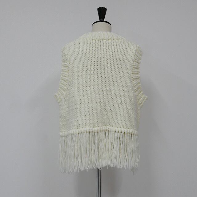 ウエスト部分から切り替わり贅沢にフリンジがついたニットベスト。シャツやカットソーに合わせてコーディネートを華やかに。