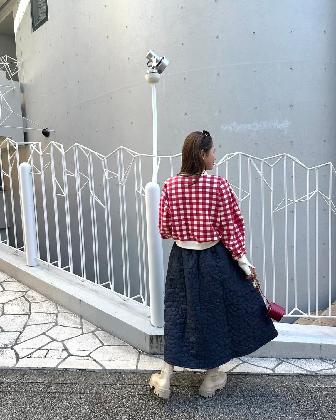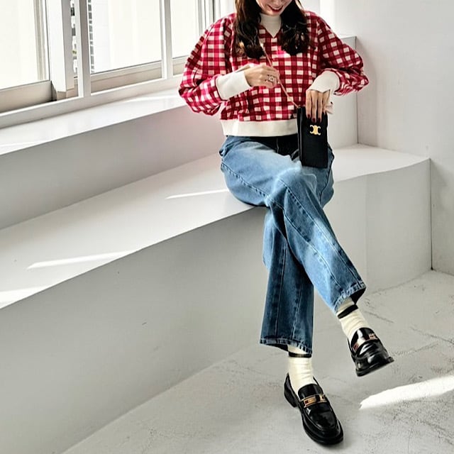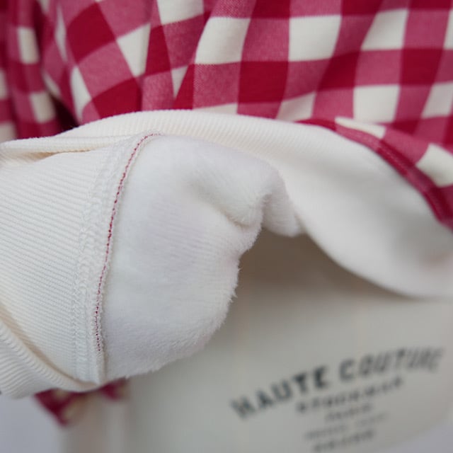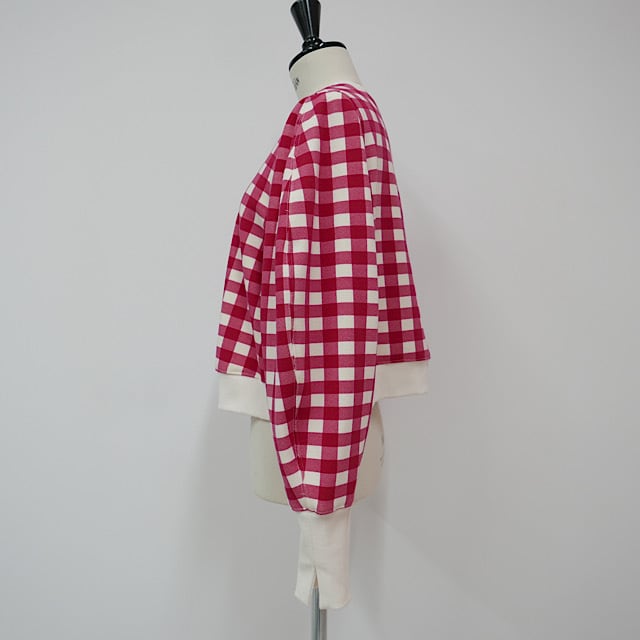 大きめのギンガムチェックのデザイン。シンプルな形の中にも、リブ素材のスリット入りの長めの袖口、ボトムスを選ばないショート丈、気負いなく手に取れるカジュアル感。と、こだわりを沢山詰め込んだ一枚。