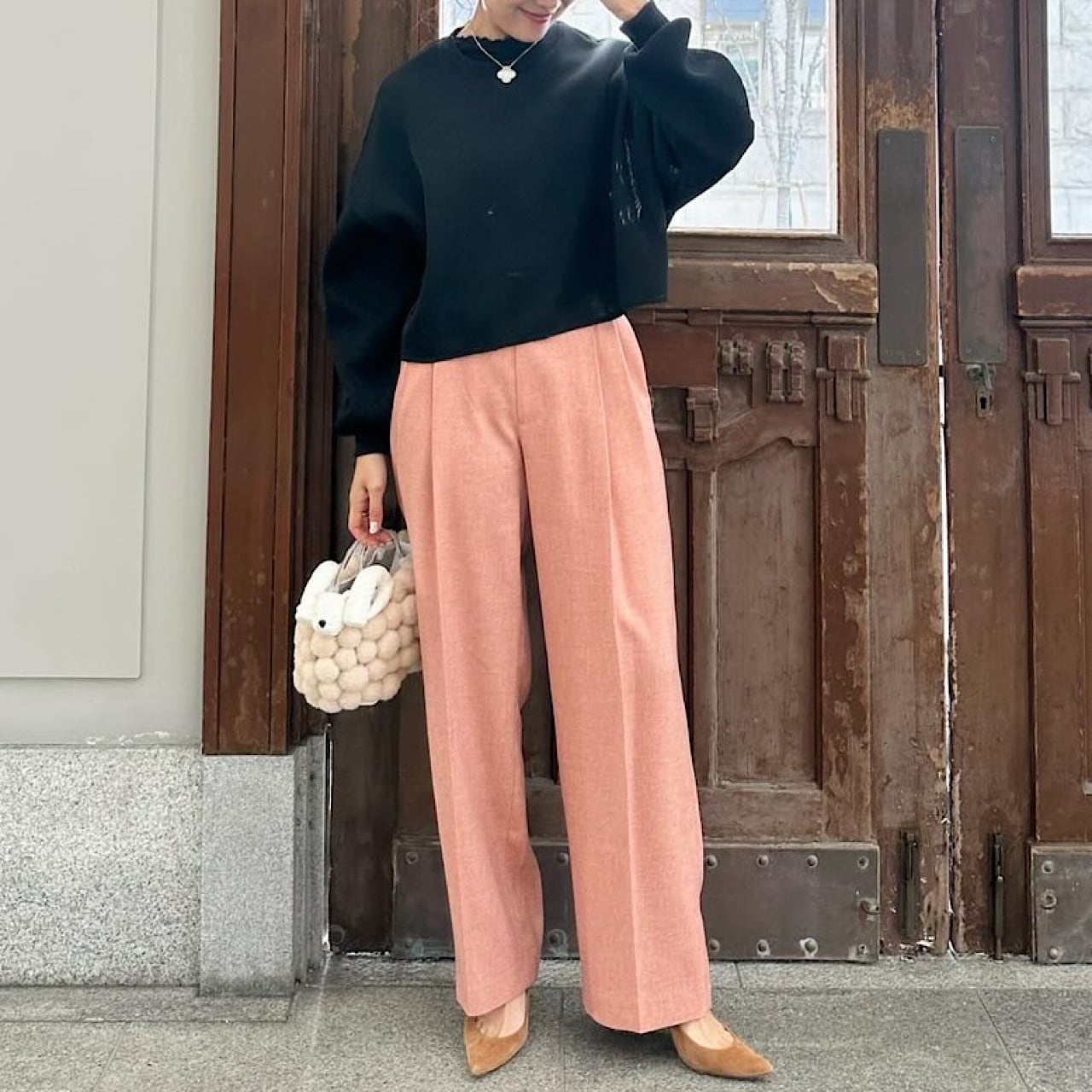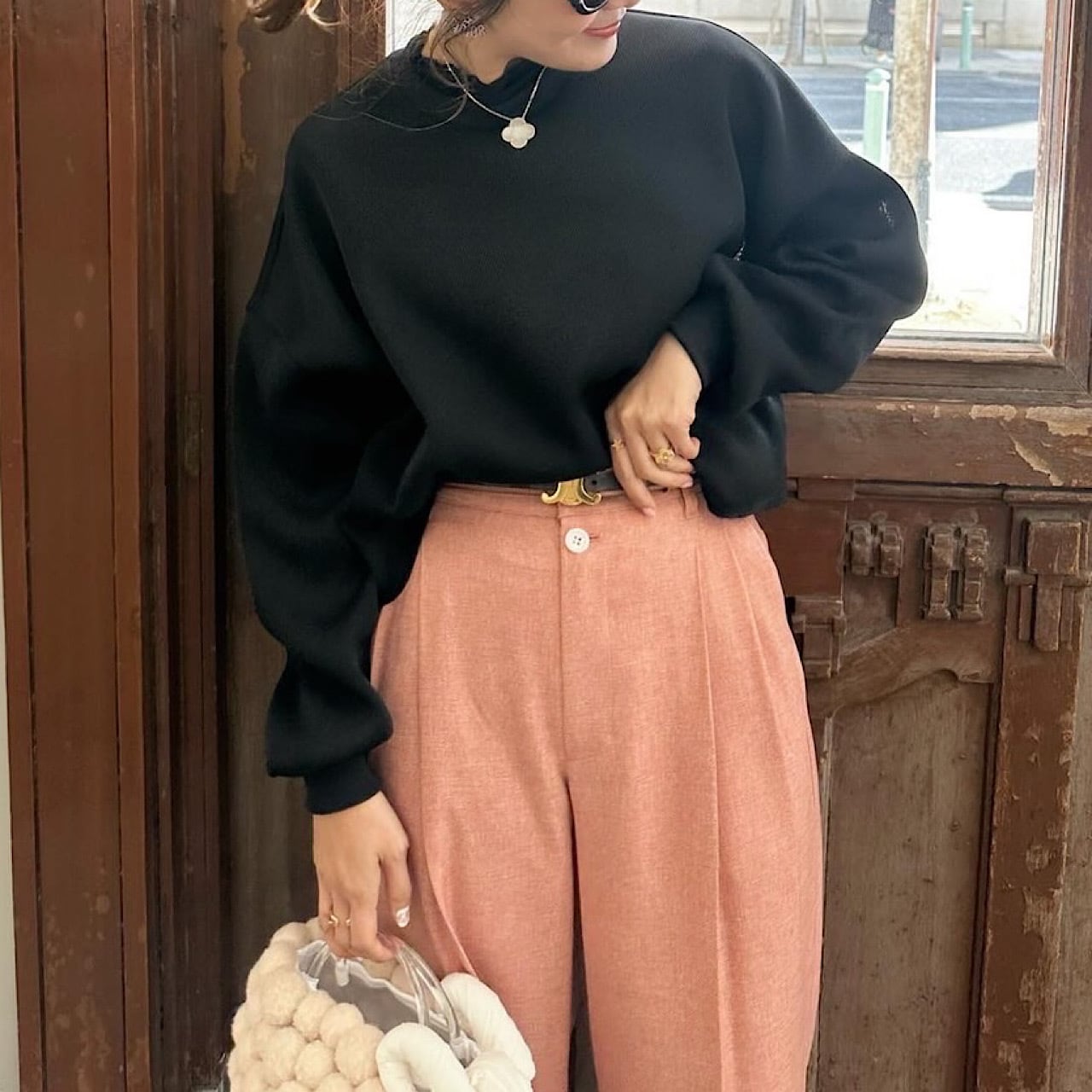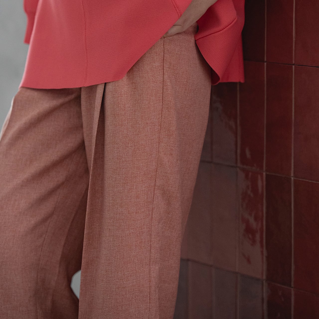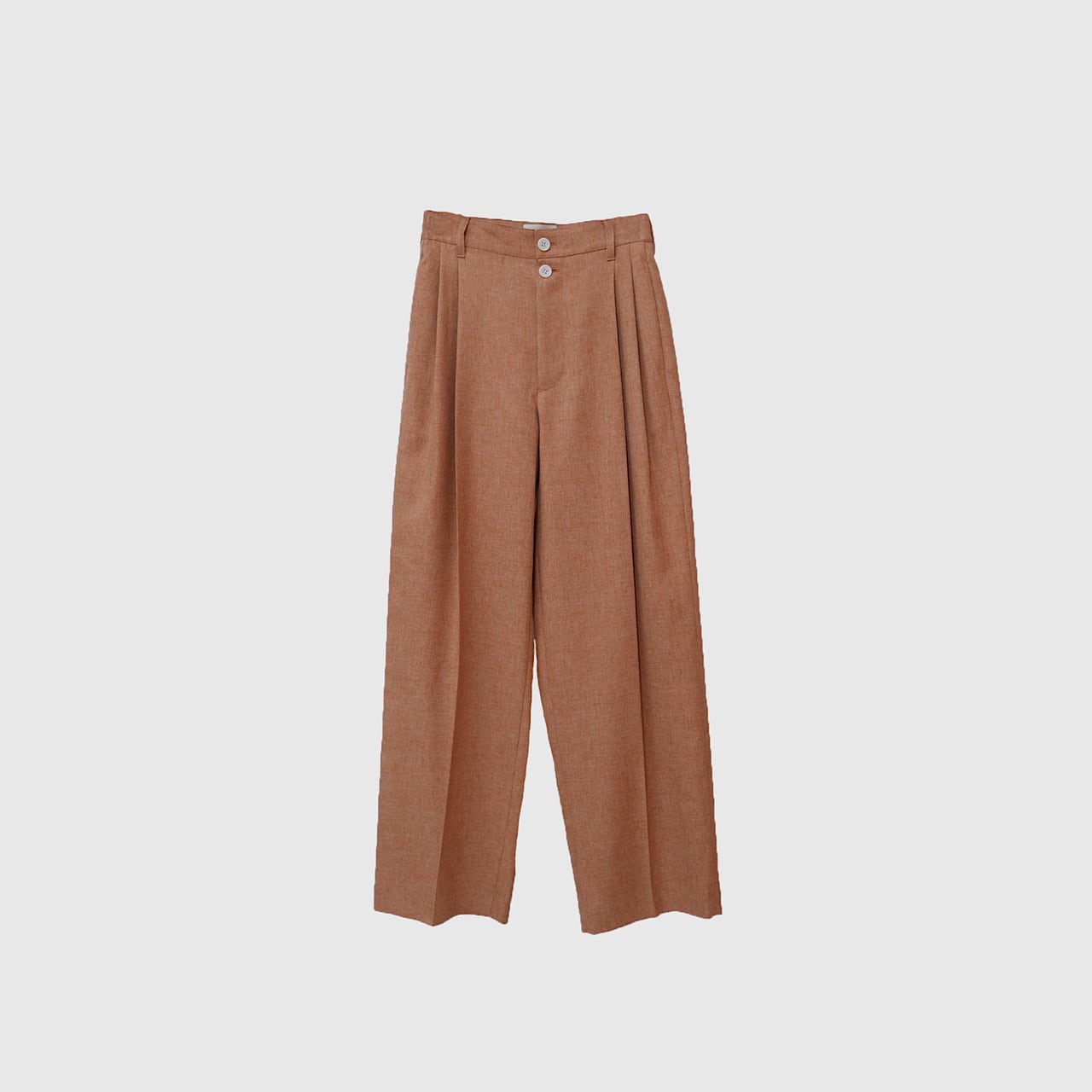 タックを施すことにより美しい立体的なワイドシルエットに仕上げたパンツ。表情豊かな見た目に加えシワになりにくい素材のツイル生地もこだわりの一つ。