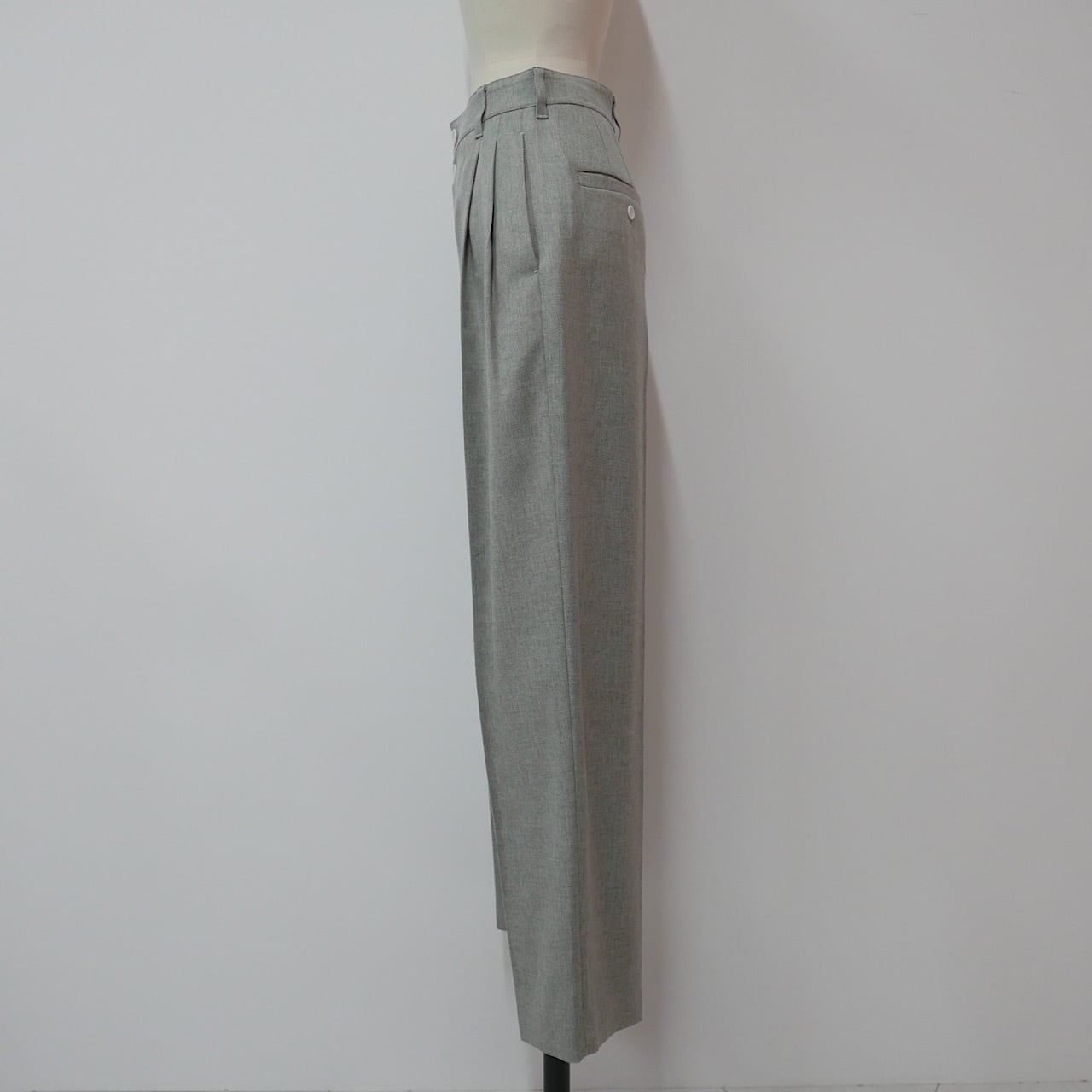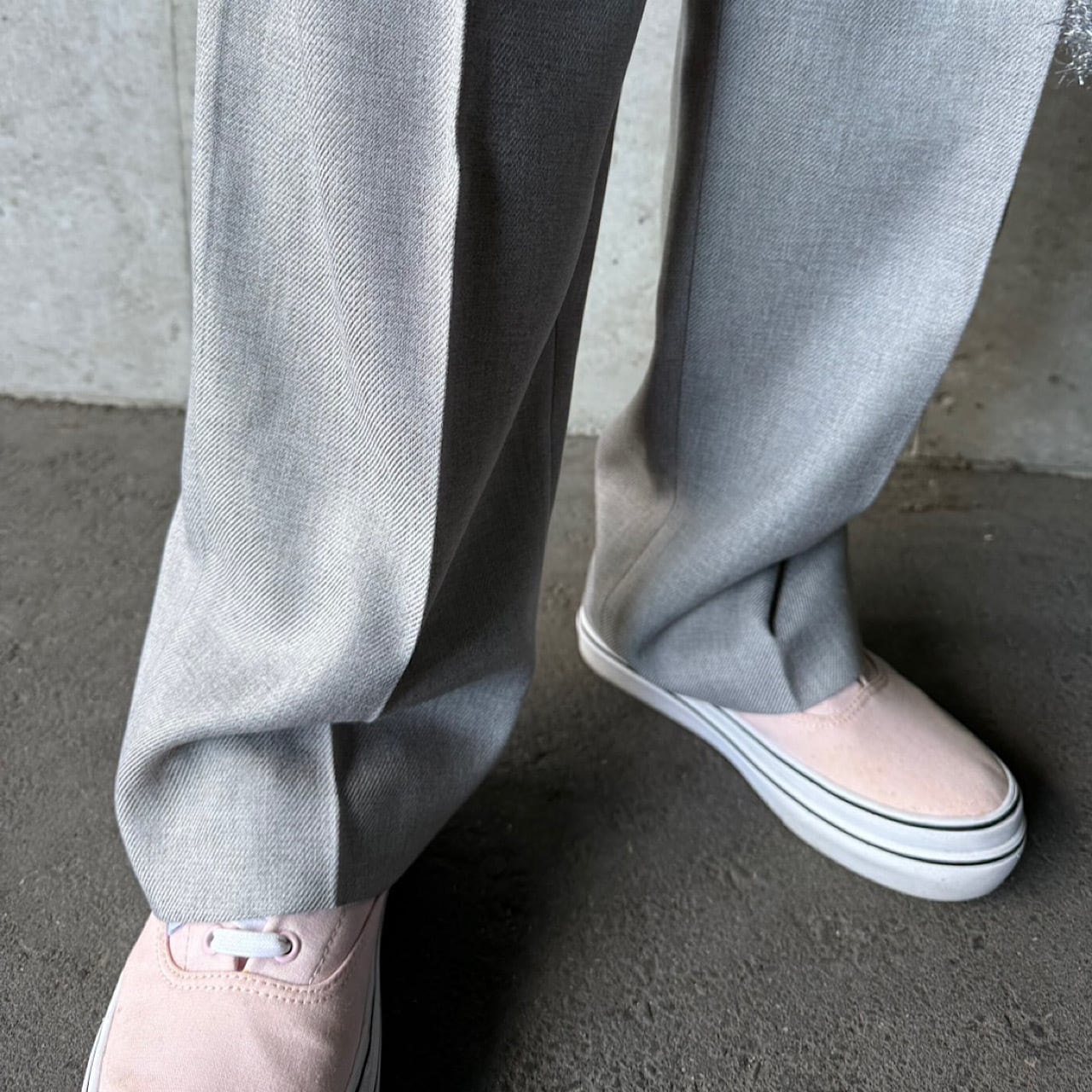 タックを施すことにより美しい立体的なワイドシルエットに仕上げたパンツ。表情豊かな見た目に加えシワになりにくい素材のツイル生地もこだわりの一つ。