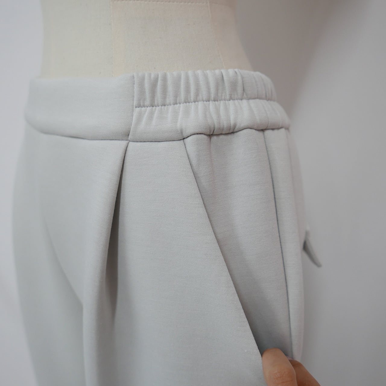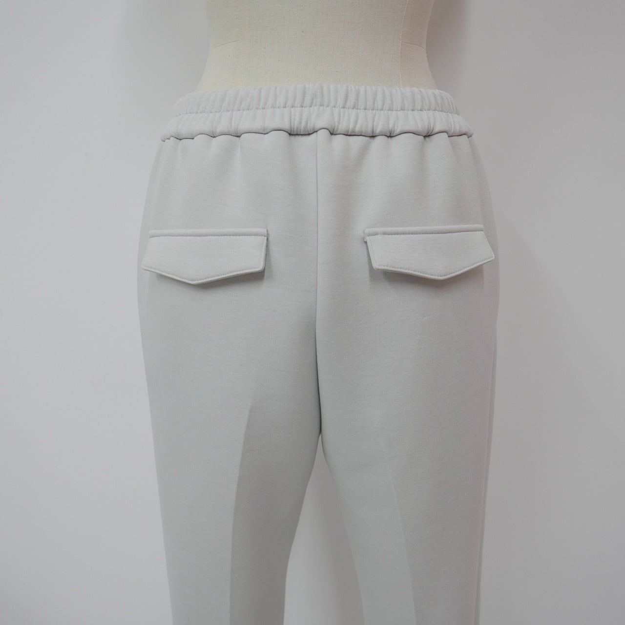 柔らかなボンディング素材を使用したテーパードパンツ。